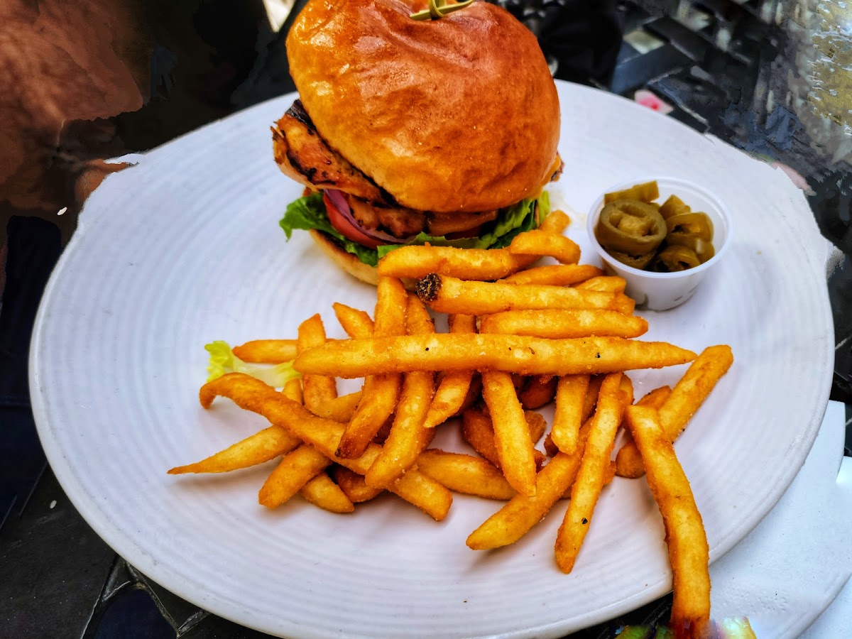 Short review - Excellent food, friendly staff, decent outdoor seating to enjoy a lovely meal with wine. This restaurant gets Raj's 4 stars - meaning worth taking a detour if possible to enjoy this place. Long review: The food menu is typical burgers, salads, and sandwiches. The chicken sandwich and salad with shrimp are exceptionally well. Hreat taste and lovely presentation. Vegan wraps tasted great with a nice assortment of veggies. Crispy French fries. Pair your meal with any decent local wine like Ferrari Careno Cabernet. The restaurant is inside Geyserville Inn, a small hotel tucked well nicely in the wine country. It is easily accessible from a major highway. The place looks sweet, an old style small restaurant with small seating and a pleasant patio seating right near the swimming pool. The staff is very friendly guys work hard, so.please tipnthe chef and the staff well. You will enjoy this place and remember your trip to this wine country. Please Like this review if you enjoy the place. Otherwise, write tour comments and let me know if your experience is less than stellar.